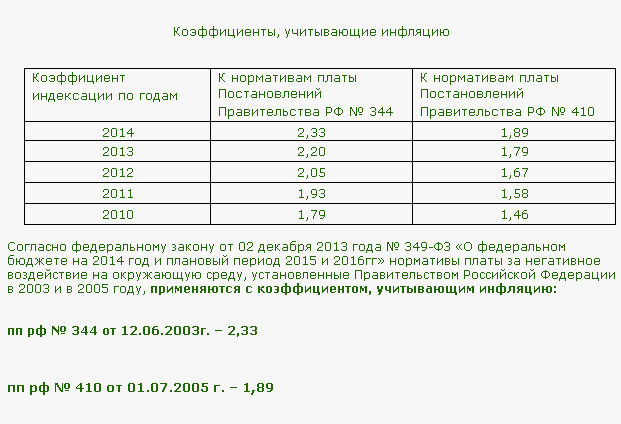 Коэффициент инфляции ежегодно устанавливается законом о федеральном бюджете.Наши настаивают на К=2,33, хотя можно с ними поспорить, конечно. Могу только посоветовать позвонить в ваше управление Росприроднадзора.