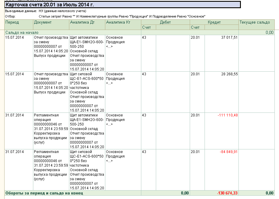 давайте оборотку 20 счета за месяц, когда он не закрылся, с полной расшифровкой аналитического учета по этому счету.