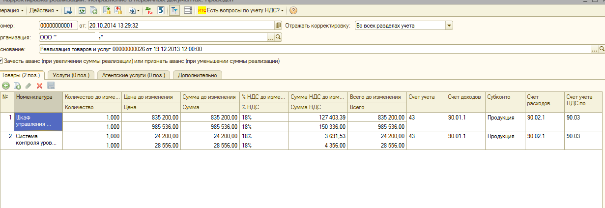 "...При этом запись для дополнительного листа книги продаж, отражающая начисление НДС к уплате в бюджет за корректируемый период, не производится, так как начиная с 01.07.2013 года при увеличении стоимости отгрузки товаров (работ, услуг) корректировочный счет-фактура регистрируется в книге продаж периода составления документов, служащих основанием для корректировки, т.е. текущего периода корректировки (согласно Федеральному закону от 05.04.2013 № 39-ФЗ "О внесении изменений в часть вторую Налогового кодекса Российской Федерации и статью 4 Федерального закона "О внесении изменений в отдельные законодательные акты Российской Федерации в связи с совершенствованием принципов определения цен для целей налогообложения") (рис. 13)...." В приложении ситуация с корректировкой реализации в сторону увеличения в следующем налоговом периоде в 1с 8.2.