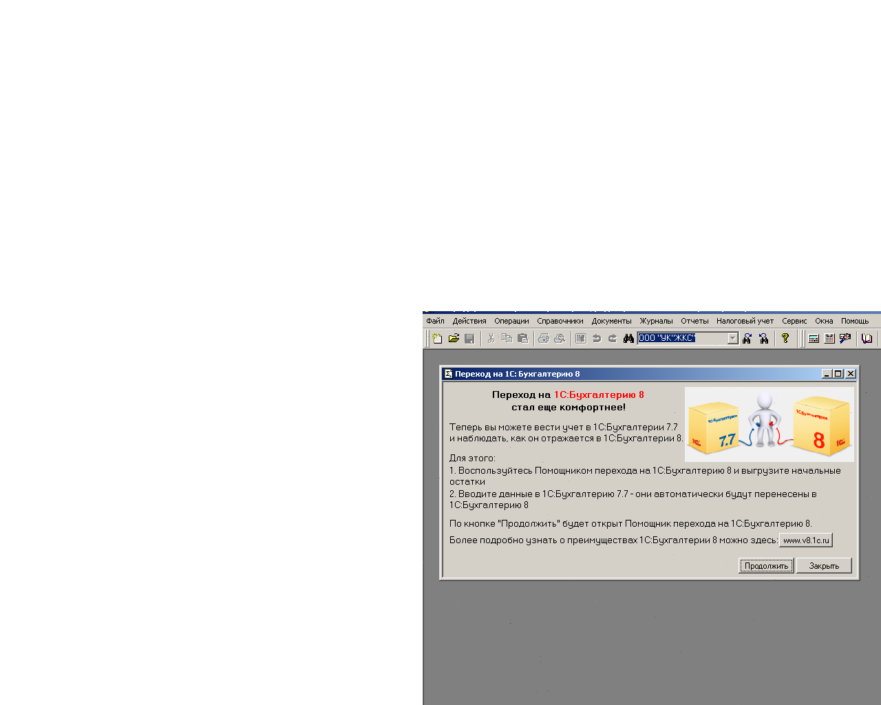 2. При запуске новой базы Бухгалтерии 8 программа предлагает сделать загрузку данных из 7.7. Далее - "интуитивно понятный интерфейс". Если эта процедура для Вас сложная или Ваша 7-ка доработанная, то можно обратиться к нам или к другим специалистам по 1С.