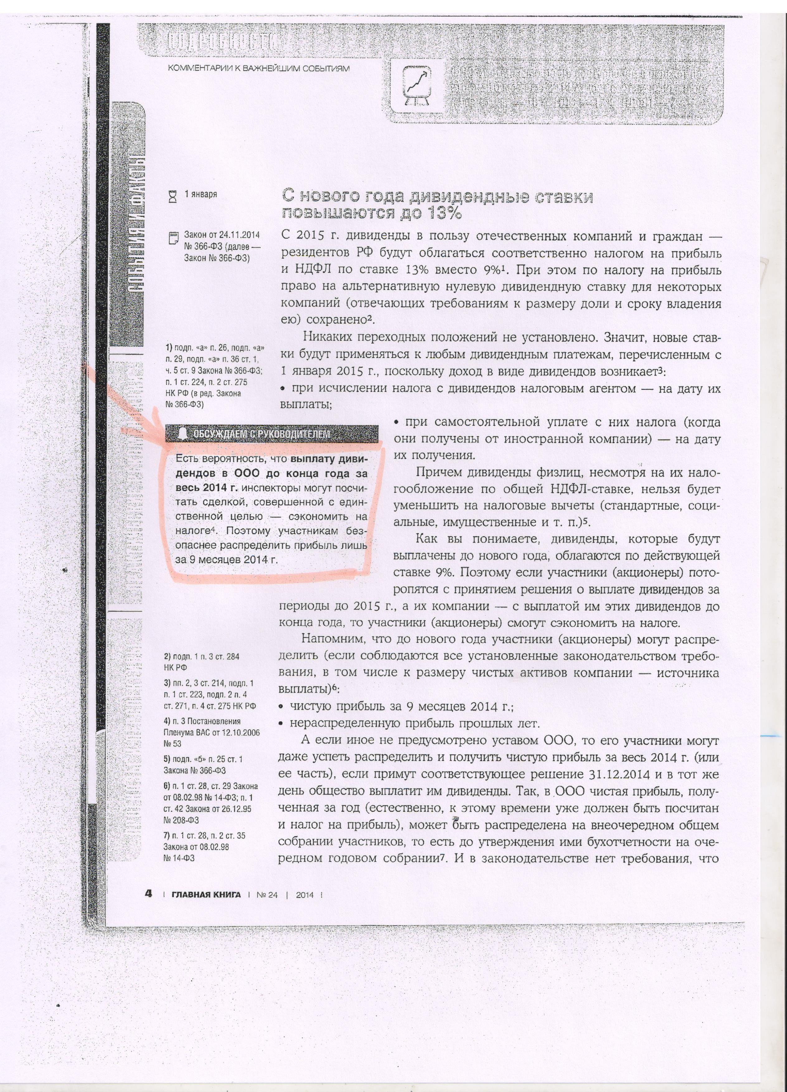 По умолчанию Re: Можно ли дивиденды за 2014 год выплатить 31 декабря?