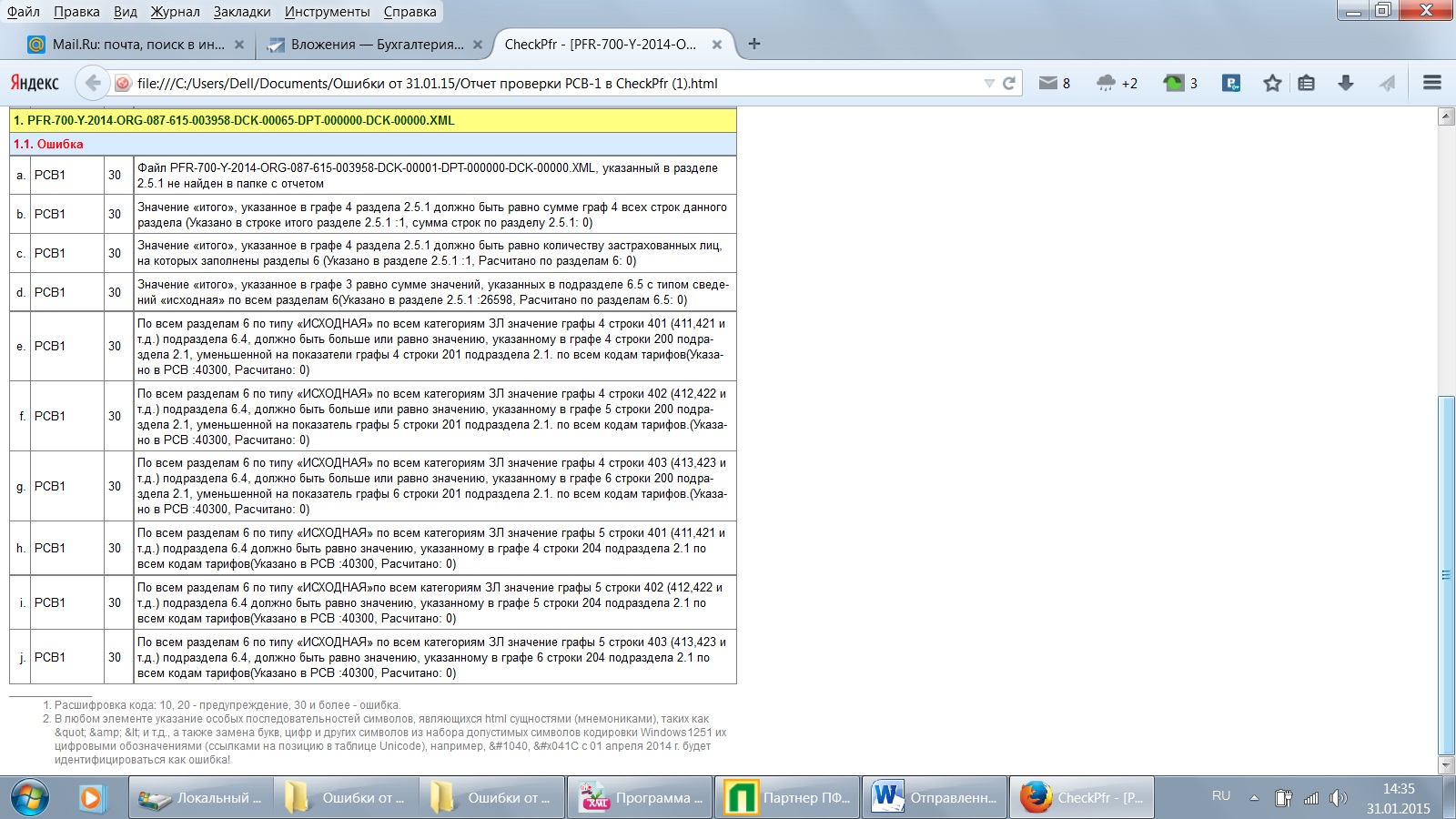 Добрый день! Я делаю отчет по РСВ-1 и персонифицированный отчет за 2014г. в программе Партнер ПФР. При записи на дискету и проверке программой ПФ CheckPfr выдает ряд ошибок, из за которых ПФ не принимает отчет. При этом при проверки программой CheckXml, которая идет в комплекте с программой Партнер, ошибки не выдает. Так же на бумажном носителе отчеты заполнены верно, без замечаний.