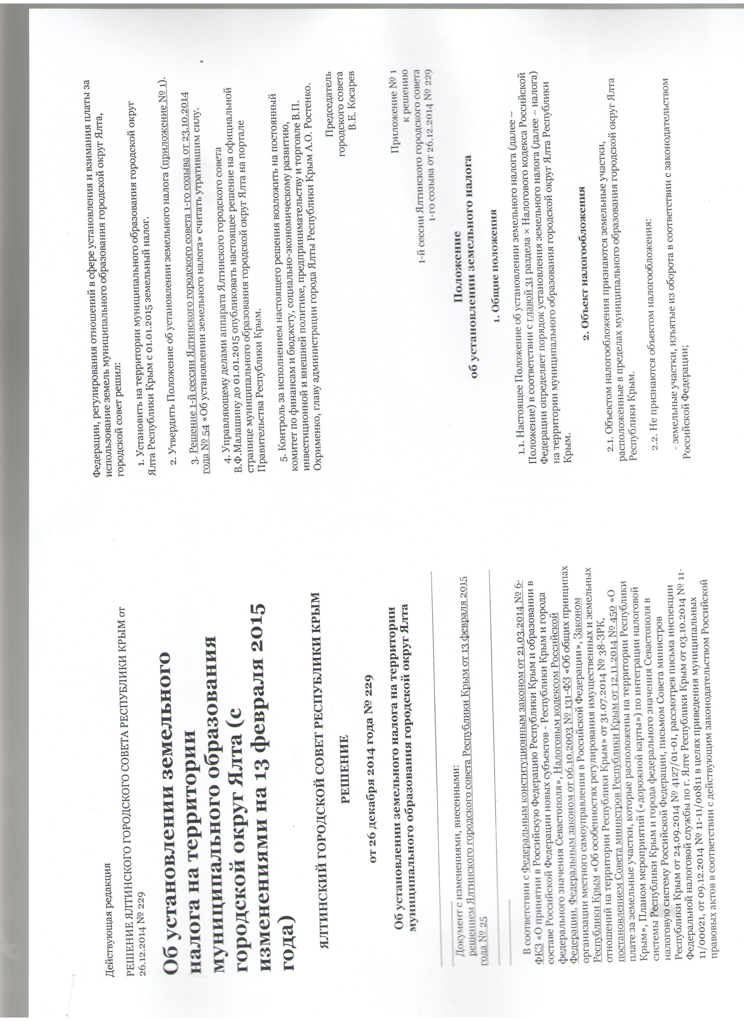 Коллеги, вот информация, которая лично для меня была очень нужна. По налогу на землю.Решение Ялтинского городского совета РК от 26.12.2014 № 229 "Об установлении земельного налога на территории муниципального образования городской округ Ялта (с изменениями на 13 февраля 2015г) Налоговая ставка 1.5% от нормативной денежной оценки для прочих участков.