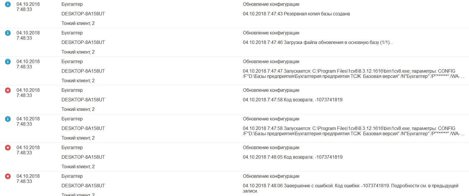 если активируется проф лицензия с помощью резервного пинкода, то лицензия полученная с помощью предыдущего пинкода из этого же комплекта попадает в черный список на сайте центра лицензирования, как только 1С на предыдущем компьютере увидит свою лицензию в этом списке то лицензия сразу аннулируется у базовых версий такой проверки не заложено и теоретически ее можно установить и параллельно запускать на двух компьютерах, но формально это будет нарушением условий лицензионного использования Последний раз редактировалось BuhRu; 02.10.2018 в 20:10. |