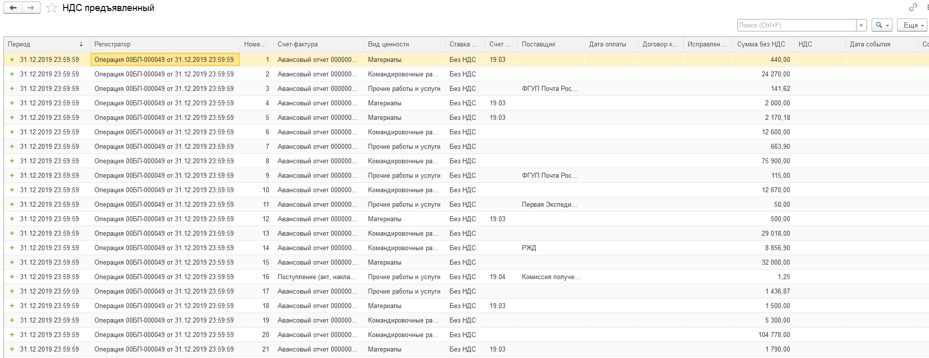 а вот если смотрю через Функции технического специалиста Регистр накопления НДС предъявленный, то там записи начинаются с 2019 года, т.е. искомых данных нет.