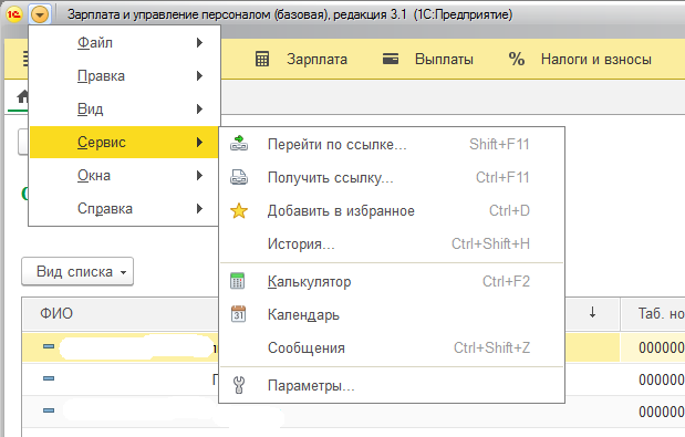 Не послала, а отправила)))) И не в "Главное", а в "Главное меню" ... это такой мааааленький ярлычок (стрелочка вниз) в левом верхнем углу, рядом с 1С