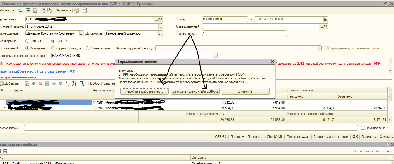 Что тут выбрать? "Перейти в рабочее место"? или "записать только файл СЗВ"?