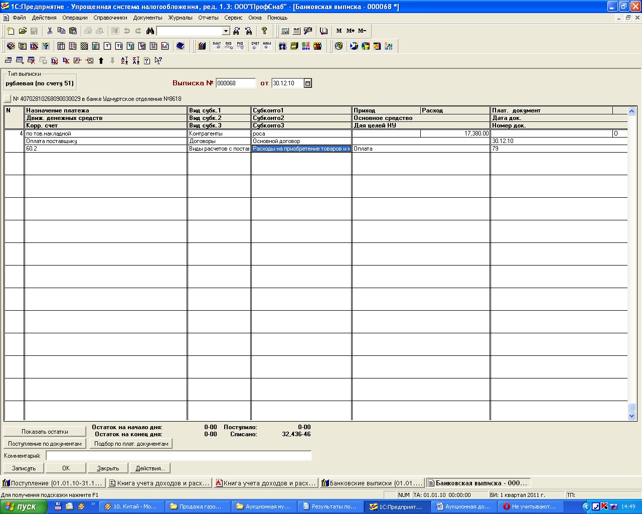 Сделала "Поступл.ОС", "Ввод в эксплуатацию", Оплачены по Банку Что дальше делать не знаю. Куплены в 2010 году. Насколько я знаю, при УСН ОС списываются в тот отчетный период, в котором они были приобретены. я ручками через "Операцию" сделала амортизацию, при реформации баланса остаточная стоимость "О". в расходы не попали. как их поместить в расходы, нигде не могу найти. Спасибо. |