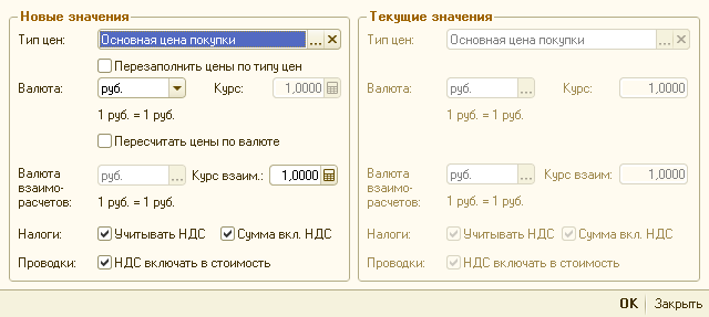 А вот по этому вопросу можете подсказать. Если мы на ЕНВД находимся (работаем без НДС), то при поступлении материалов, где "Цены и валюта", какие галки мы должны ставить? Где налоги и проводки.