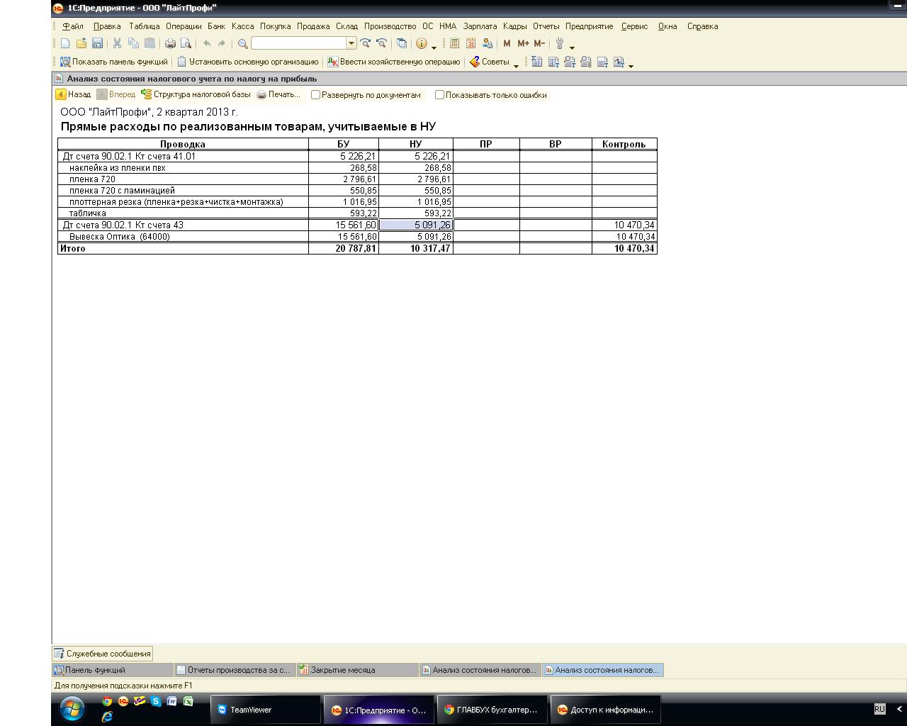 Добрый день! в выпуске продукции постоянно не идет НУ и БУ. Что я только ни делала,но разница все равно остается 5091,26 - это сырье, а 10470,34 - это мы покупали услуги у сторонней организации для изготовления этой продукции. Аналитику везде проверяла,ничего не помогает, из-за чего может быть эта разница?