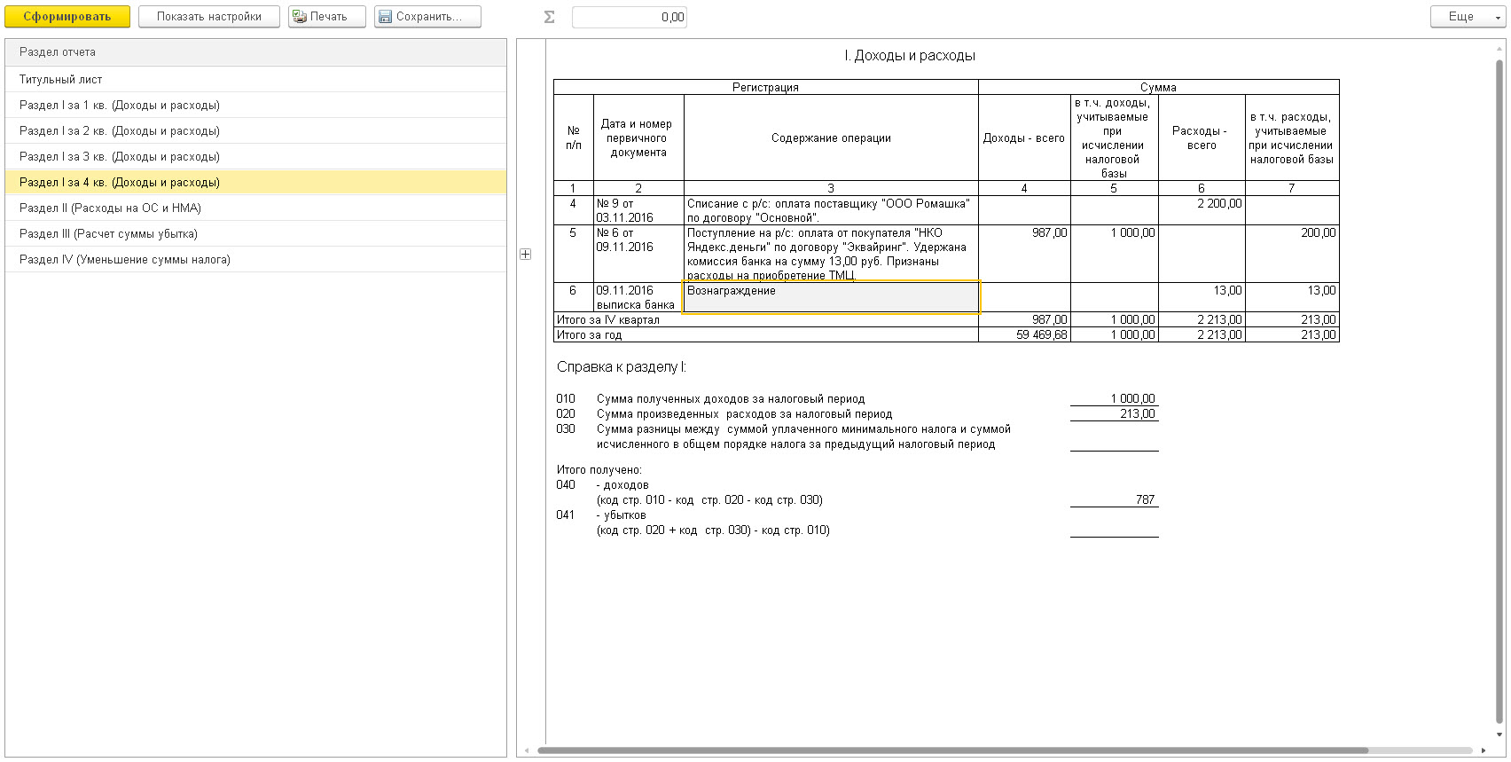 Т.е. Доходы попадают (за минусом комиссии) в графу Доходы учитываемые для налогообложения попадает сумма с комиссией, в Расходы попадает сумма оплаченная поставщику, расходы уменьшаемые налогооблагаемую базу попадет себестоимость товара, и документом запись доходов и расходов УСН, попадает сумма комиссии как в Расход, так и в расход уменьшаемый.