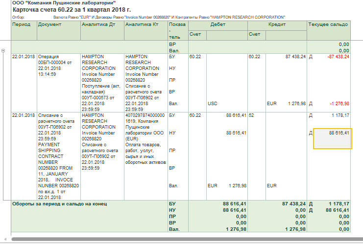 Оплата раньше отгрузки. оплатили 22.01 - 1*276,98 евро это 100 % предоплата. Я уже совсем запуталась. Может нужны сами документы показать?