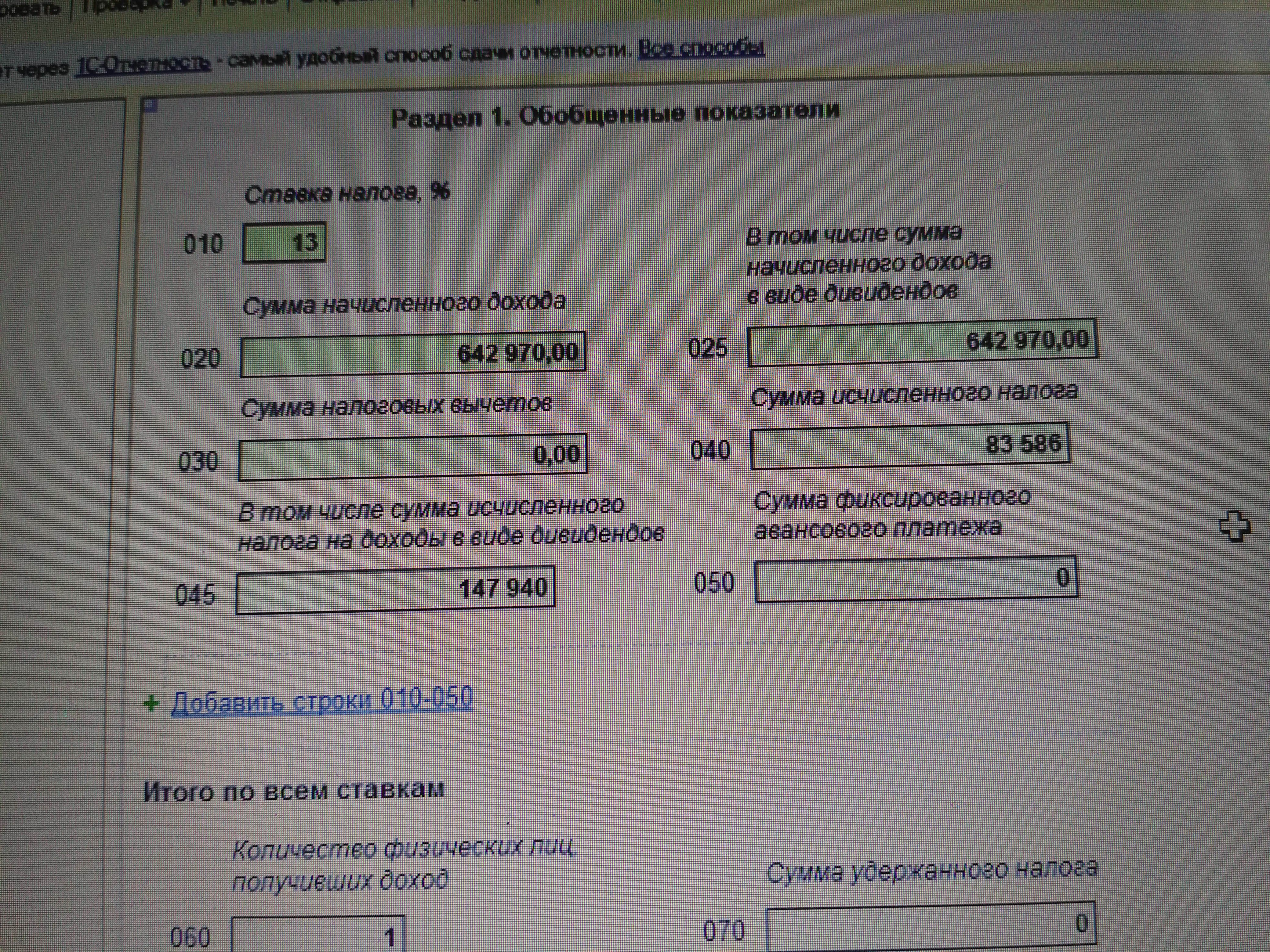 Ой... сейчас сформировала отчет 6-ндфл. ( так как решение ед. уч. было сделано 29,03,2019), а выплата была в апреле, то отчет с начислением дохода должен быть в 1 кв. 2019, вот только сумма дохода не верная... а почему не могу разобраться... :(