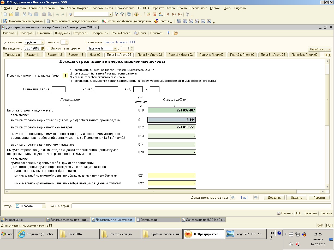 Добрый день. Помогите разобраться. Откуда сумма берется в приложении № 1 к листу 02, строка 011- выручка от реализации товаров собственного пр-ва. Не должно быть там суммы. Где что посмотреть и исправить. Заранее спасибо за ответ. Я совсем начинающий бухгалтер.