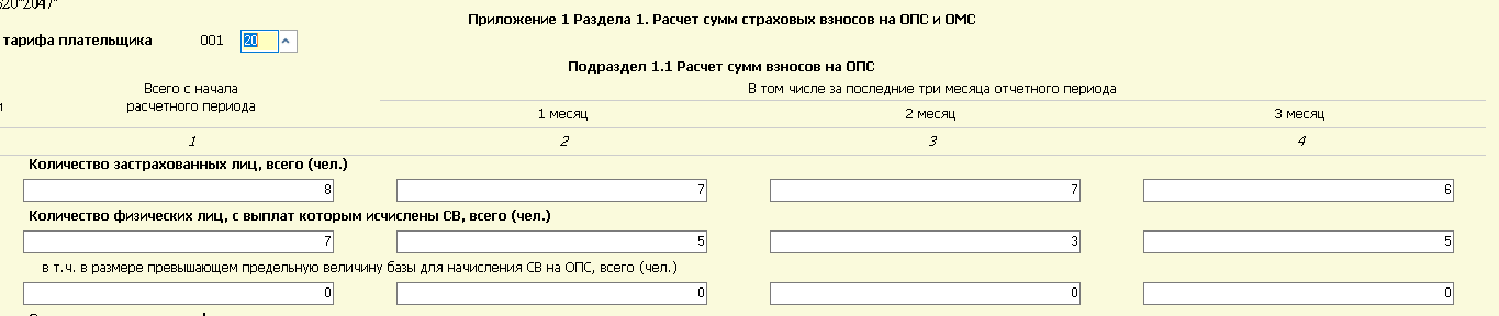 Вот еще интересно. Он ставит мне в строку 010 цифру 14 человек - а по факту начислено взносов с 13 - этот 14ый был в отпуске без оплаты, но з/п его больше МРОТ и прога считает, что этот чел должен стоять в строке 010 по коду 20. А мне кажется, по коду 20 должны стоять люди, которым было начислено в конкретном месяце - и строке 010 и в строке 020 - они должны быть равны. Что скажете?