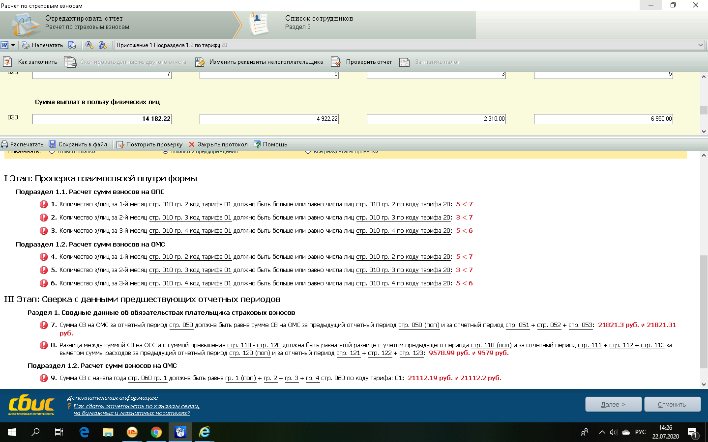 Думаю, вручную исправлю в разделе по с/с по коду 20 численность - поставлю такую же как в ОМС и ОПС. Не думаю, что это может быть критичным.