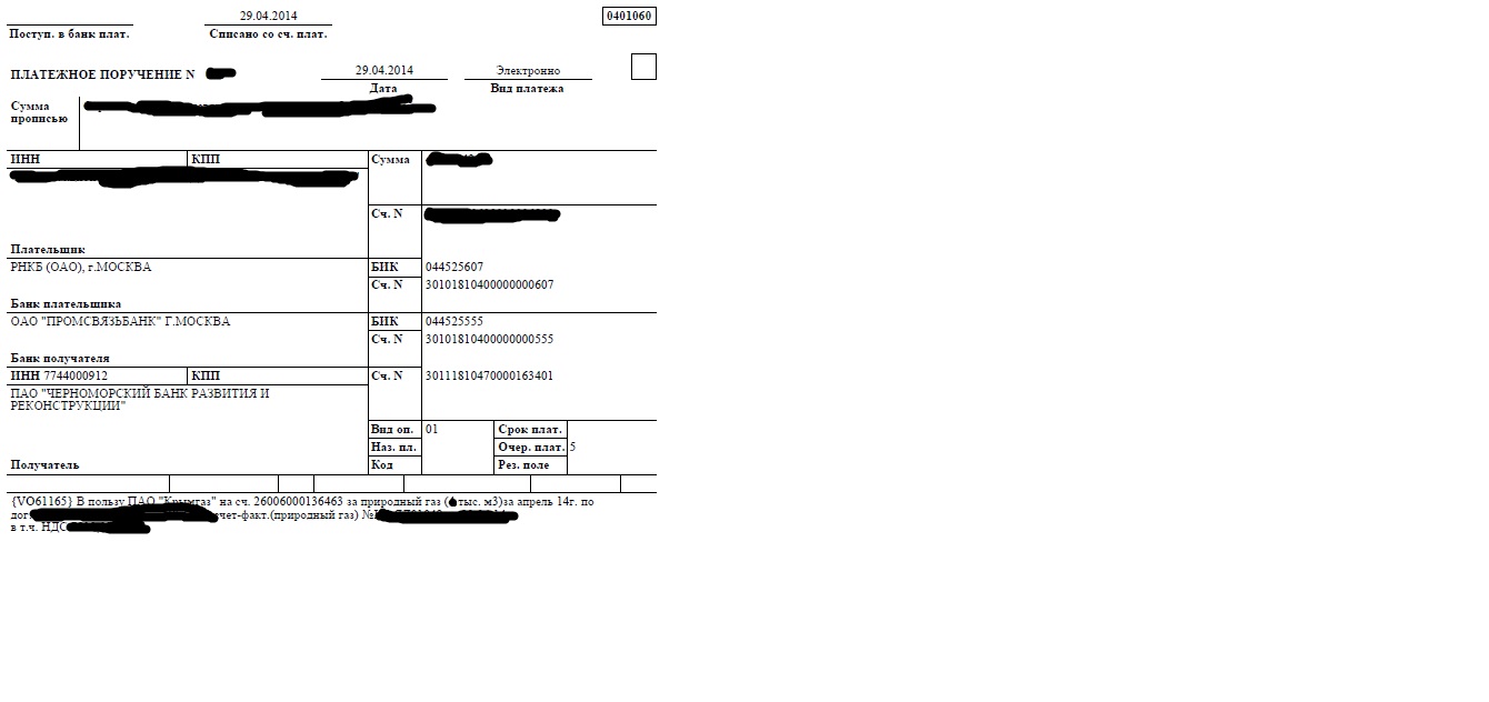 Размещаю для всех - платежка из РНКБ получателю в ЧБРР (в данном случае - ОАО "Крымгаз")