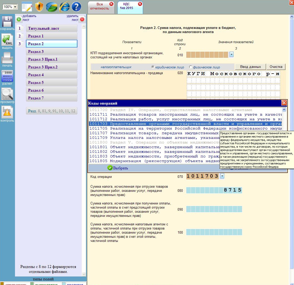 неправильно*заполнены*реквизиты: код ошибки: 0300300023, ошибка: Отсутствие обязательного реквизита VVV Вам необходимо представить в течение пяти дней пояснения по выявленным ошибкам (противоречиям, несоответствиям) или внести соответствующие исправления в налоговую декларацию (расчет). p.s. С 2005 года 4 раза в год с начало на бумаге, а с 2014 года электронно сдавал 3 листа - титульный, 1 раздел и 2 раздел. И всегда, всегда было без проблем. Даже как писал выше, что своему товарищу я на днях помог сдать НДС агент отчет электронно и также заполнил 3 листа и у него отчет прошел нормально. (Он район Московский и работает и сдает отчет, я Фрунзенский сдаю отчет работаю Московский). Помещения у нас от одного и того же арендодателя КУГИ. |