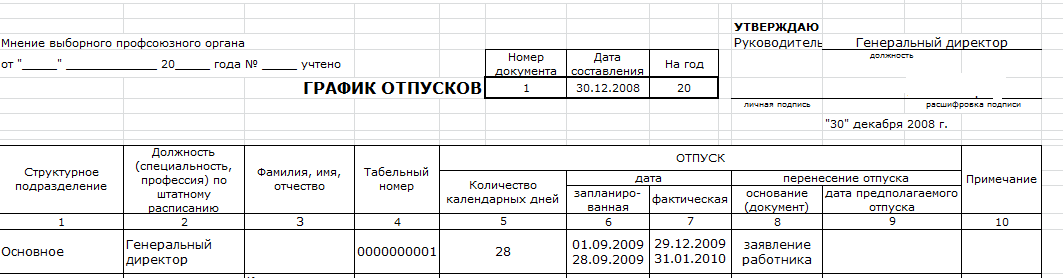 Перенос даты. Если работника не устраивает время отпуска, установленное в графике, он может попросить работодателя изменить его. В этом случае сотрудник должен написать заявление в произвольной форме. Если руководитель согласен на перенос отпуска, он ставит на заявлении свою резолюцию.