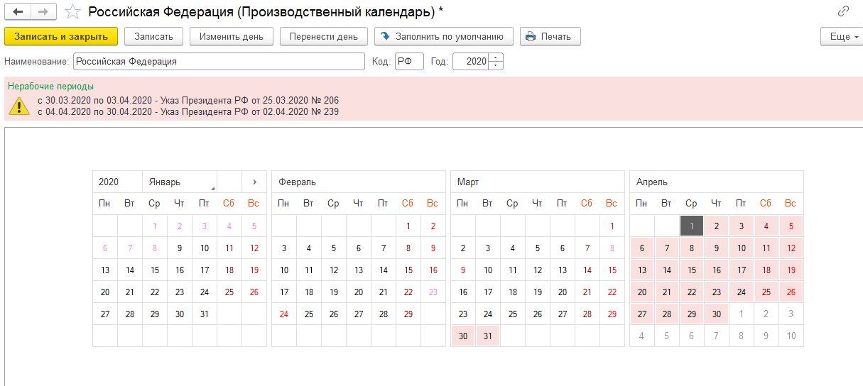 ЗУП 3.1 весь апрель в производственном календаре нерабочий и не даёт изменить!