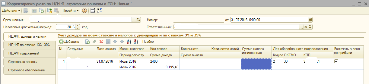 Вкладка НДФЛ налоги и доходы