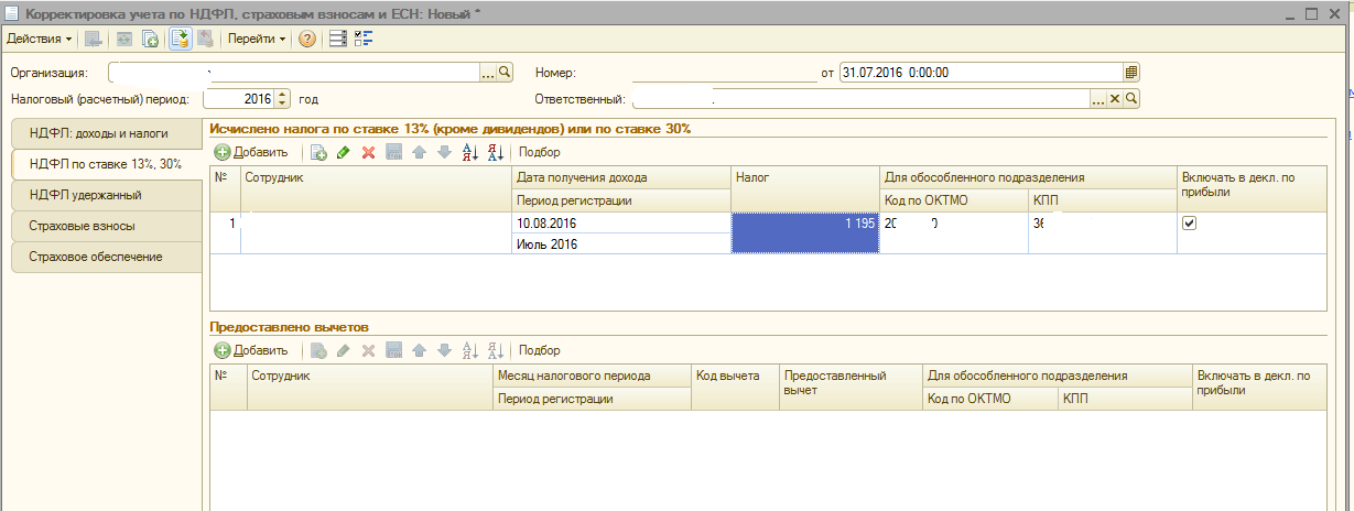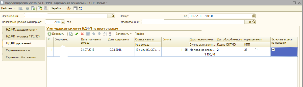 Вкладка НДФЛ удержанный