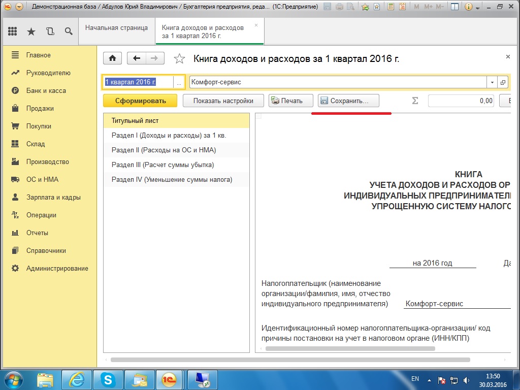 нет там этой кнопки (не вижу, ткни если есть) ((( видимо КУДиР не является отчетом...