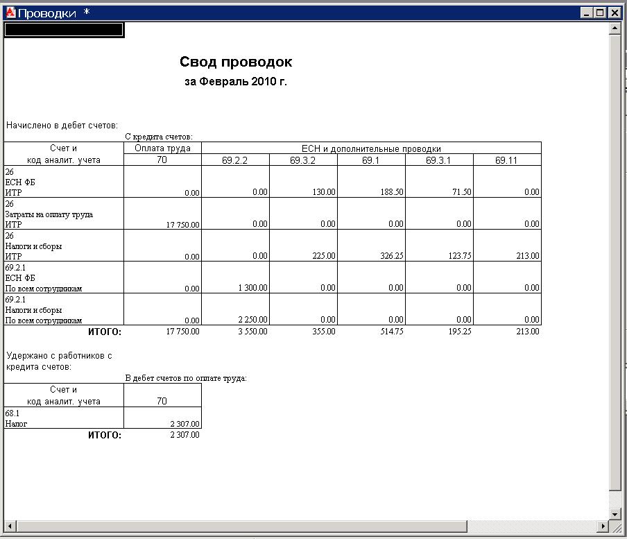 На тему про расчет зарплаты и получающегося в результате свода проводок. Бухгалтерам он не нравится, что там цифры попадают не в те номера счетов, которые они хотят видеть. Делаю я так: Регламенты -> Расчет зарплаты ставлю галочки начисления, удержание, прочие -> нажимаю расчитать во вкладке "Расчет НДФЛ уд." тоже нажимаю расчитать. В "Расчете страховых взносов и отчеты" ставлю галочки "Налоговый регистр учета налогов с ФОТ" и "Сводные проводки". Нажимаю "Выполнить". В результате формируется 2 таблички. Одна из них называется "Свод проводок". Вот именно к ней все притензии бухгалтеров. Они хотят, чтобы было больше 26го счета. Вот там где 69.2.1, это им не нравится. Кстати, а почему не нравится ? И можно ли сделать табличку правильной ? |