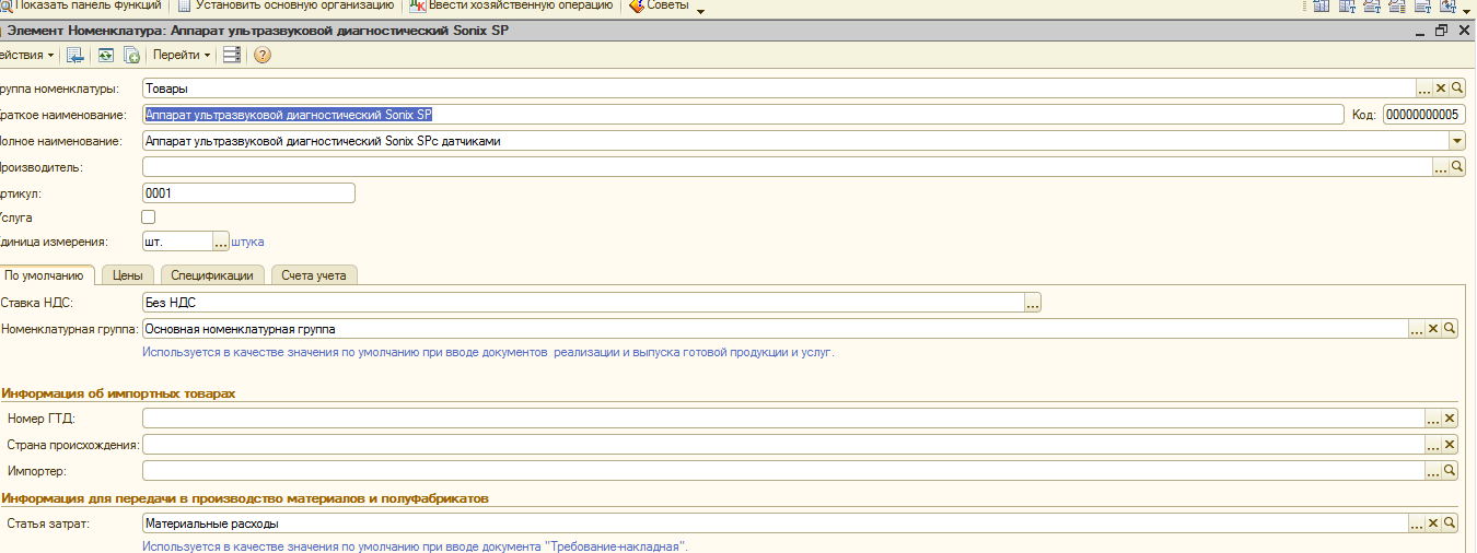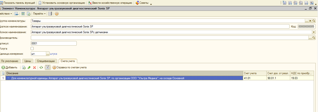 правильно! Ты ж покупаешь товар, чтоб его потом продать! Вот когда покупаешь делаешь через покупку комиссию, выбираешь в нем вкладку товар, заходишь в группу номенклатур (названия тебе выдает товар, услуги, материалы, оборудование ну и т.д) заходишь в папку товар и в ней создаешь новую единицу (там будет такой крестик -добавить) тебе открывается серое окошечко вот ты и создаешь новый товар (ну допустим кресло стоматолога) заполняешь в этом окошечке все данные (НДС ставишь без НДС по-моему ты на упрощенке) дальше выбираешь основная номенклатурная группа дальше статья затрат выбираешь материальные расходы! и жмешь ОК! Все у тебя товар создался делаешь приход забиваешь цену и ОК провести! Товар попал в товар (если сформируешь оборотку по 41 счету ивидишь его там кол-во и цену! Дальше когда делаешь реализацию этого товара то опять продажа далее заходишь в товар (папку) открываешь ее и выбираешь нужный тебе товар (кресло стоматолога) пишешь кол-во и цена! Проводишь документ и все у тебя должно списаться!