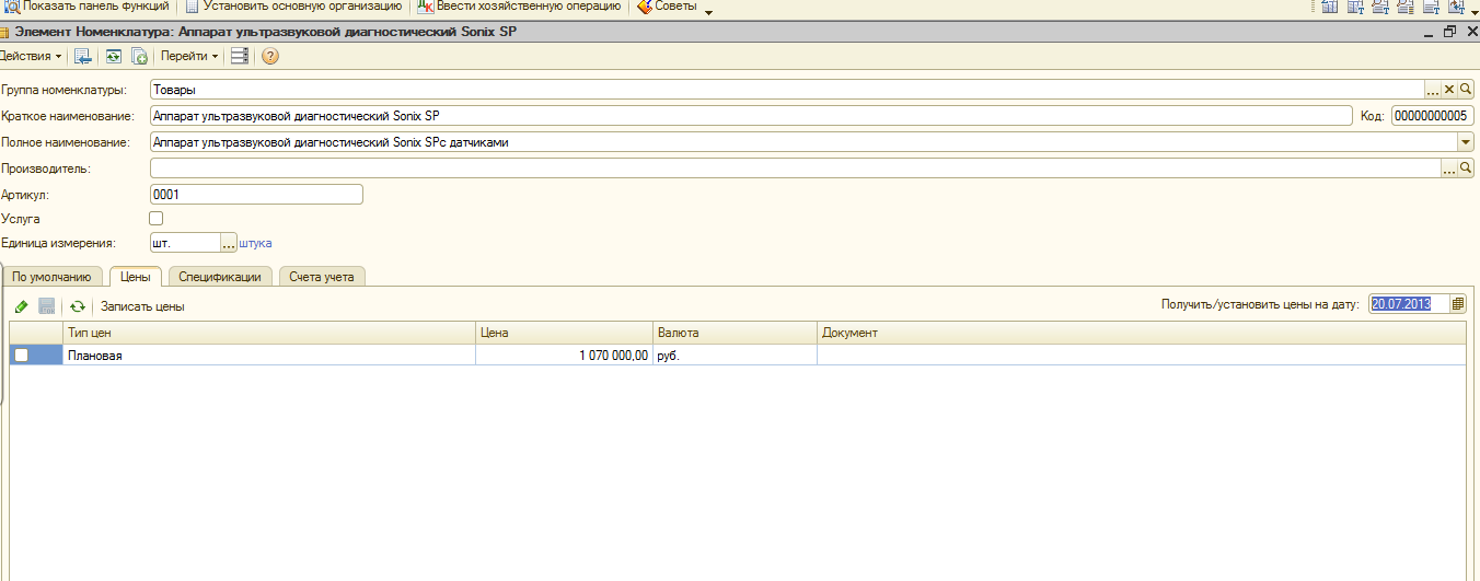 LiGro, все точно так, как Вы сказали, ОТ и ДО. Кроме: в номенклатурной группе мне не открывается список (материалы, оборудование), там было пусто. Я создала папку "товар" и взяла свой аппарат в документ из этой папки. Это ок?