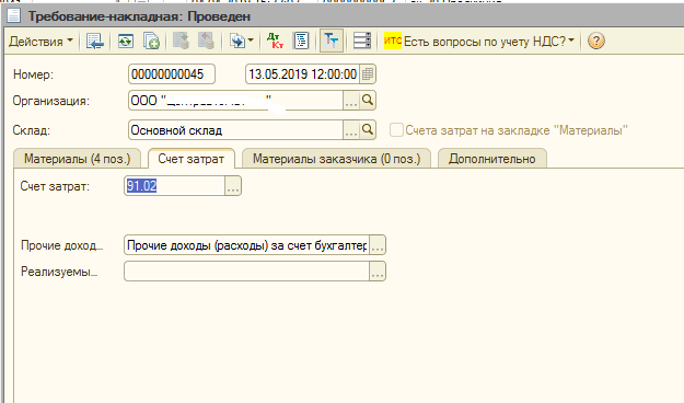 В 1 с 7.7 при перемещении материалов,часть отражаю,как не принимаемые для целей налогообложения) и почему то эти суммы повисают в графе 1520 кредиторская задолженность в балансе. Проводки какой то не хватает?