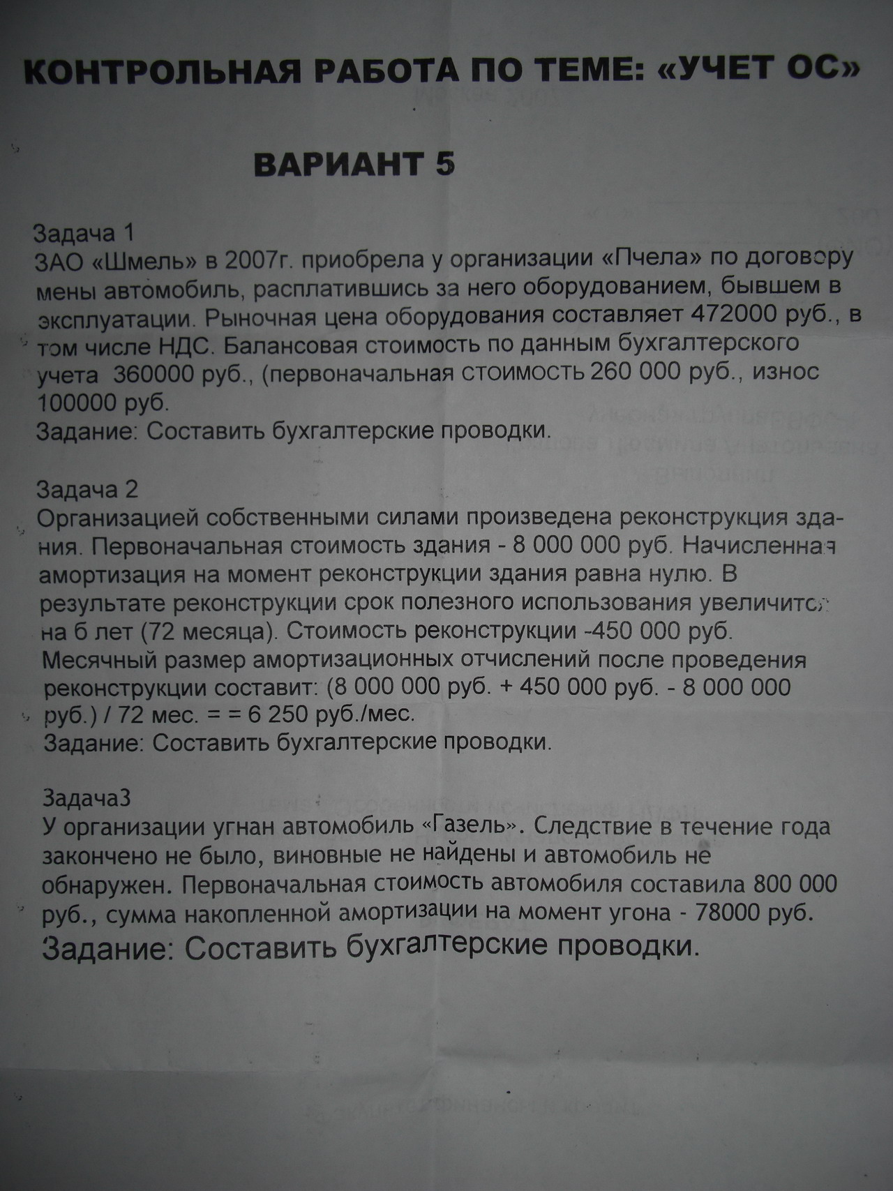 В задаче № 2 не понятно почему амортизация у вас составит 6250р.? амортизация должна начисляться со всей стоимости здания (и с 8000000р тоже).