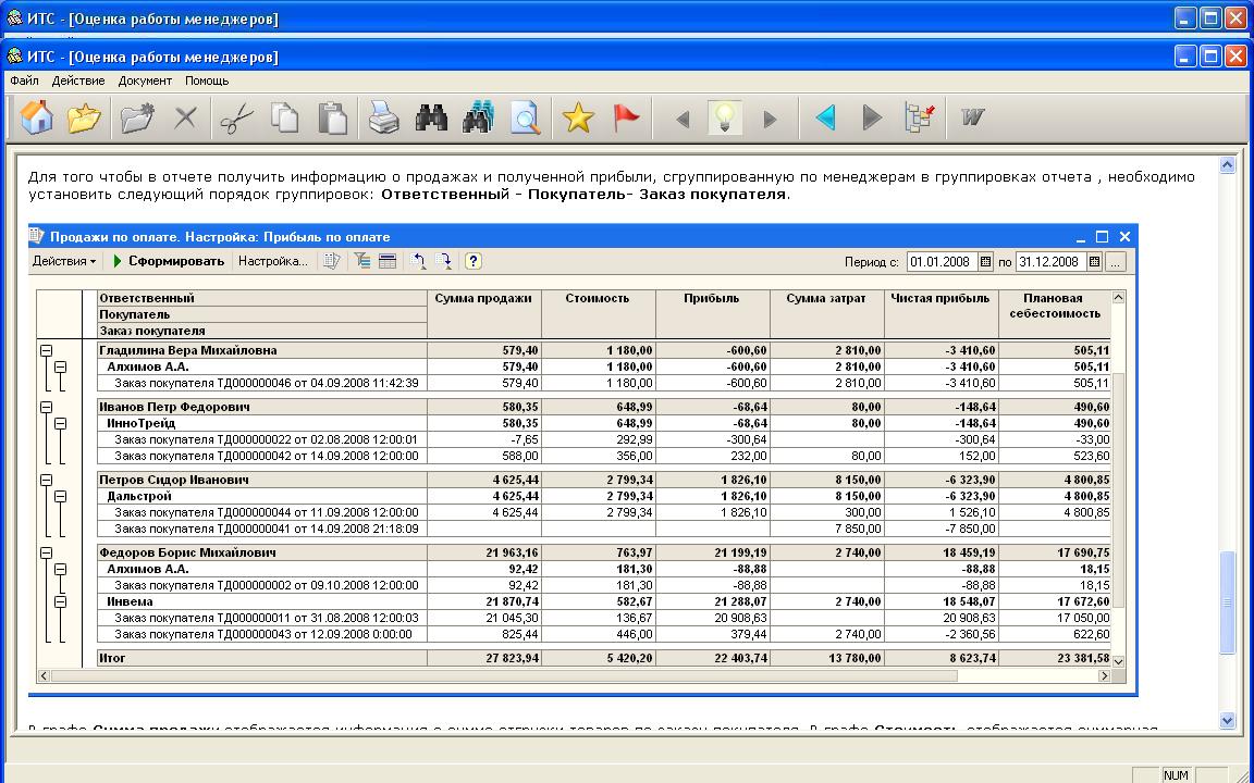 В 1С 7,7 можно было сделать отчет по проджам и по каждому менеджеру можно было увидеть кто сколько продал кто какую наценку сделал какую прибыль принес фирме....в управлении торговлей как сделать такой же отчет?