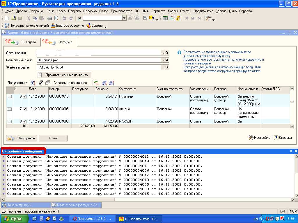 выгрузка из банк- клиент Антоний Программы: 1C 7.7 8 06.07.2008 23:03