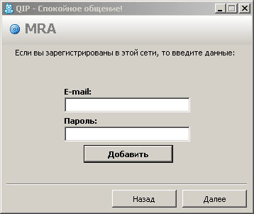 2. В следующем окошке (настройка ICQ) вводим логин и пароля учетной записи ICQ и жмем "Далее" (Картинка 10).