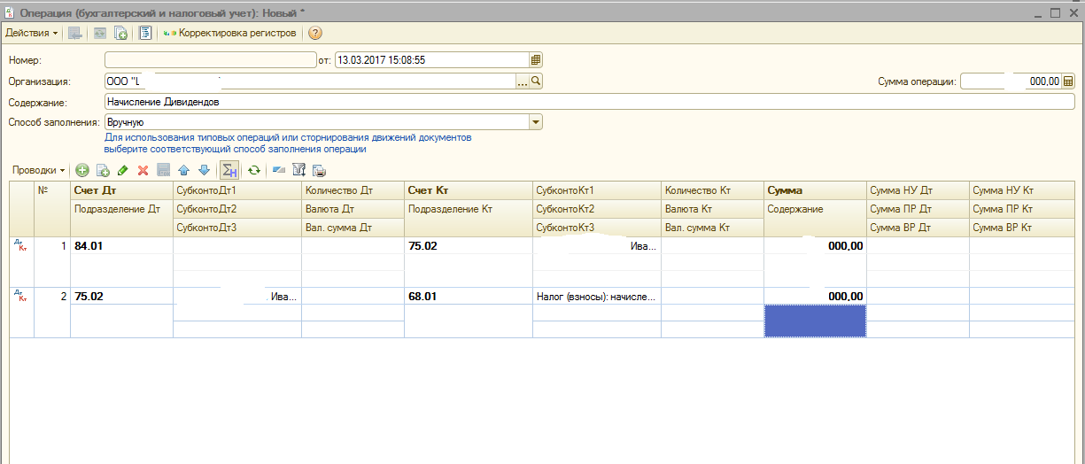 По умолчанию Re: Как начислить дивиденды в 1С 8