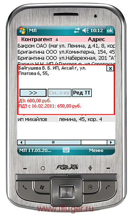 • Рабочее место торгового представителя, работающее на КПК (Смартфонах) c Windows или Android.