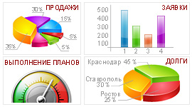 • более 20 видов отчетов о результатах деятельности, доступных в режиме on-line (включая уникальный для таких систем отчет - «Панель индикаторов (dashboard)»).