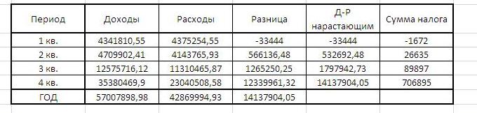 ![]() Взялась наконец-то за декларацию, за всю свою малую деятельность, делала ее только однажды, такой ситуации не возникало... Сделала сводную табличку, она ниже. Как видите, в первом квартале у меня расходы превысили доходы, посему и минус в разнице - заполняю ли я строку 030? Далее: если стр. 030 = 0 стр. 040 = 26635 стр. 050 нарастающим итогом = (89897+26635) = 116532 стр. 060 = программа ставит 590363 (хотя разница в 4 квартале при умножении на 5 дает мне 616998... не пойму этот момент, но предполагаю, что вопрос глупый, просто голова уже не соображает) В остальном все верно, как и считала, налог составил 706895 рублей. Очень жду помощи в своих двух вопросах! |