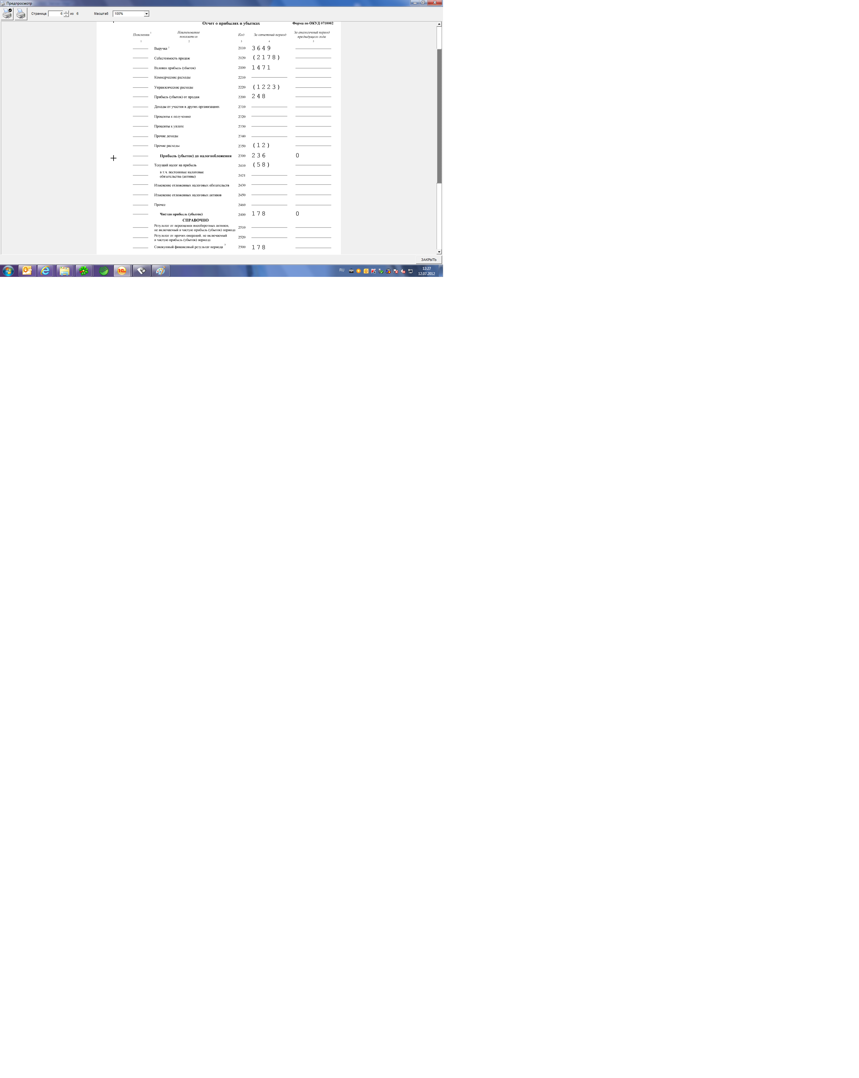 По умолчанию Декларация Прибыль и отчет о прибылях и убытках