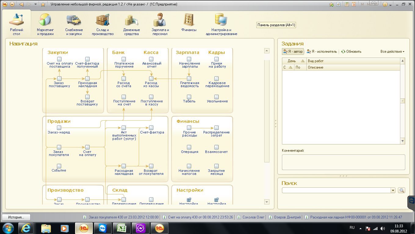Начал пользоваться 1с 8.2 управление небольшой фирмой.