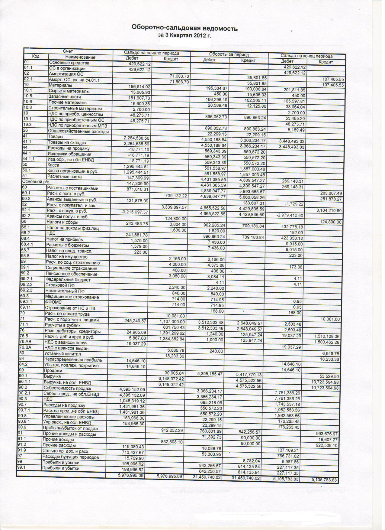 Ирина0021, обратите внимание на сальдо вспомогательного счета 000, счетов учета затрат (20,26, 44) счета продаж 90, свернутое сальдо которого должно быть равно нулю (аналогично и 91-го)... |