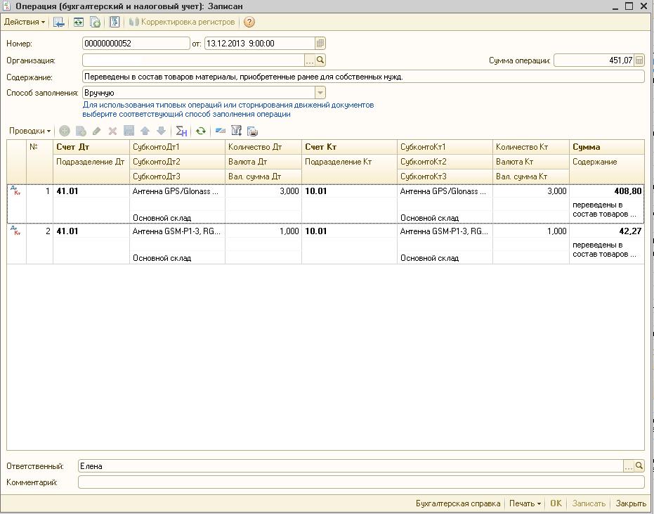 И потом, эти материалы оказались на складе в течение всего года, как я их сейчас переведу в товар? Этот вариант не годится.