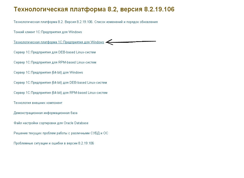 Далее выбираете платформу 8.2 или 8.3, щелкаете, а далее "Технологическая платформа 1с.... для Windows"