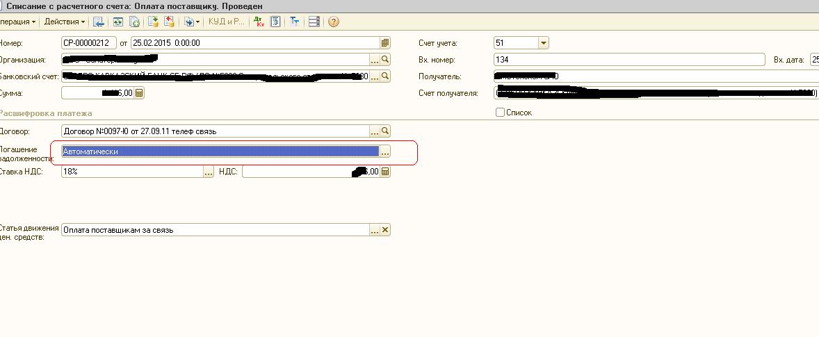 доброго дня. в списании с расчетного счета с видом операции - Оплата поставщику при проведении не ставится 3-е субконто по сч.60.01 (документы расчетов с контрагентами), хотя если выбираю Список и погашение задолженности По документу (сейчас стоит автоматически) - то могу выбрать нужный документ.