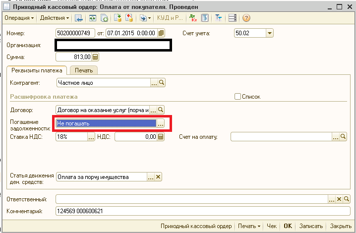 Доброго времени суток. подскажите пож-та, почему когда ставлю в приходном кассовом ордере погашение задолженности автоматически (рис.1), то в проводках (рис.2) в сч. 62.01 по КТ 3-е субконто не ставится (а должен ставится этот же приходник, с которым сейчас работаю), а если ставлю погашение задолженности - Не погашать (рис.3) (что не правильно, т.е. задолженность не будет списана), то в проводках (рис.4) в сч. 62.01 по КТ 3-е субконто ставится - именно тот приходник, с которым сейчас работаю.