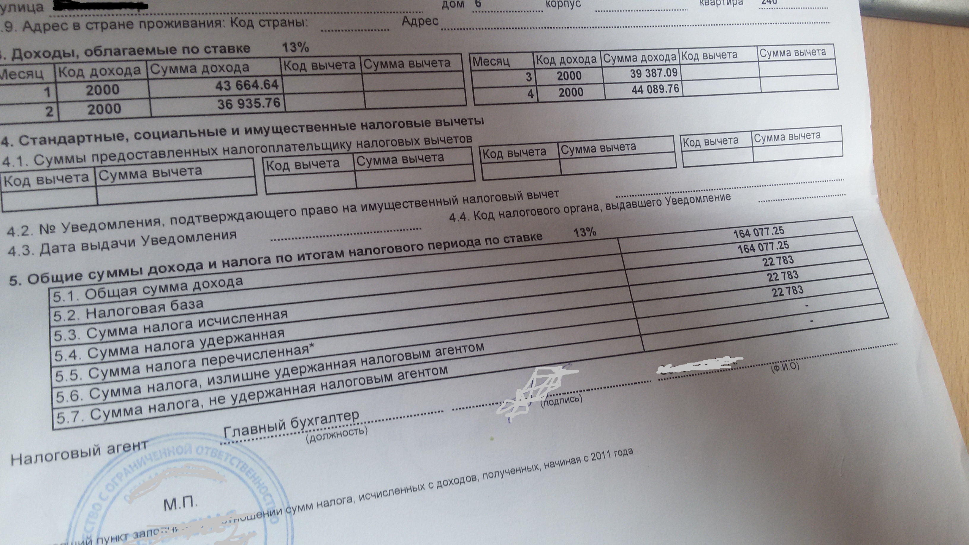 либо второй вариант: Скорее всего сама справка заполнена не верно. У Вас разница -1453. Это сумма стандартных налоговых вычетов за 4 месяца на 2 детей.. У Вас есть дети?