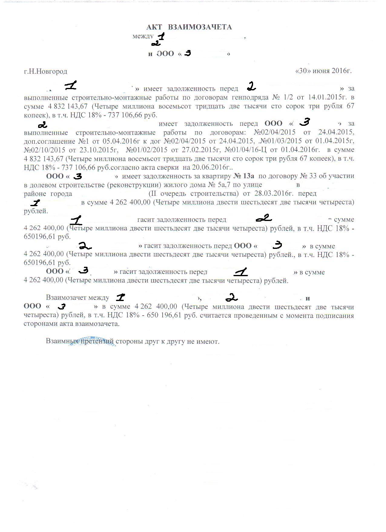 По умолчанию Акт взаимозачета