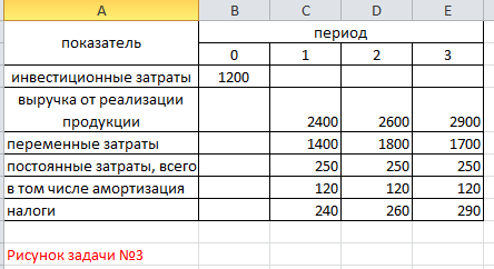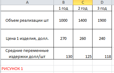 1) Рассчитать срок окупаемости оборудования, если инвестиционные затраты составляют 300 тыс. руб., а годовая величина прибыли ожидается в размере 150 тыс. руб., амортизационные отчисления составляют 10% от первоначальной стоимости оборудования, а процент по банковскому депозиту 20 тыс. руб. 2) Ожидается, что величина инвестиций в проект (0 шаг) составит 1 млн. долл. По продукту запланированы следующие показатели (см. рис 1): Постоянные издержки по проекту составят 150000 тыс. долл. в год. Требуемая норма дисконта составляет 15% годовых. Рассчитайте чистый дисконтированный доход и сделайте вывод об эффективности проекта. 3) Оцените финансовую реализуемость инвестиционного проекта (данные рис.2), если источниками финансирования инвестиций являются банковский кредит 600 млн. руб. и собственные средства предприятия 600 млн. руб. Банковский кредит привлекается на 2 года под 20% годовых. Погашение кредита осуществляется равными долями в конце года, проценты выплачиваются с непогашенной суммы кредита. |